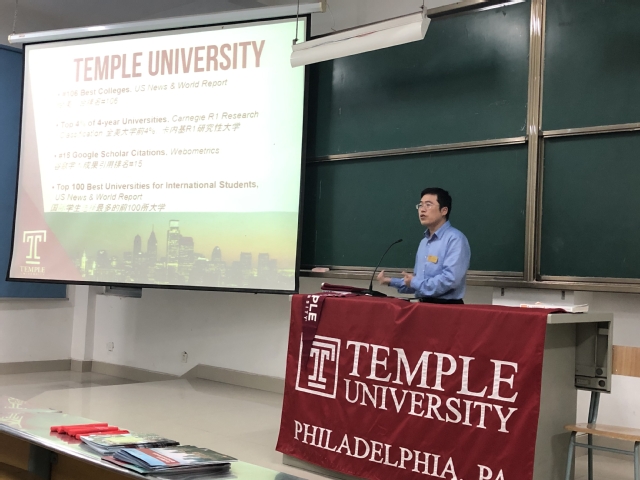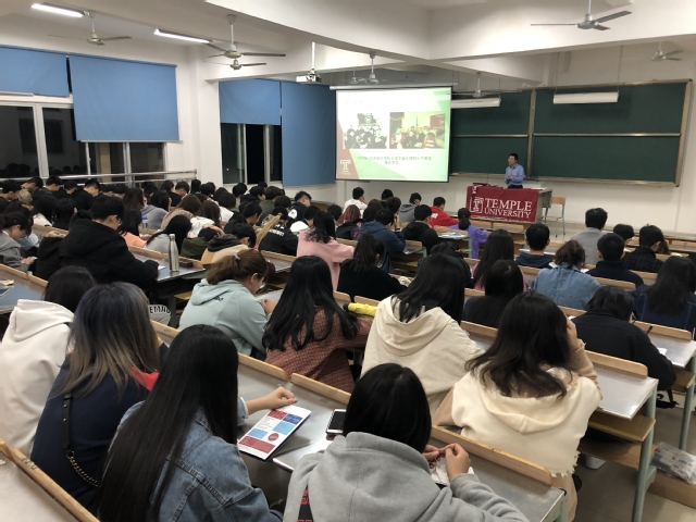 会上,老师向同学们介绍了天普大学的总体办学情况及办学特色,详细介绍校的专业设置、课程内容、入学条件、学习费用、发展前景等。精彩的讲解让在场同学对这所美国合作大学有了更加深入的了解。