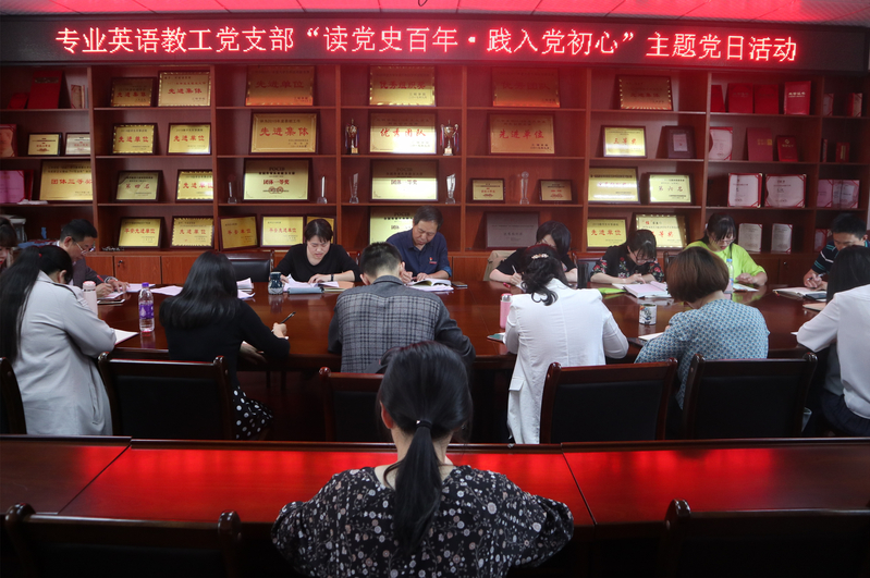 为庆祝中国共产党成立100周年,结合党史学习教育,在第26个“4·23世界读书日”来临之际,专业英语教工党支部于2021年4月21日下午开展“读党史百年·践入党初心”主题党日活动,支部全体党员参加。