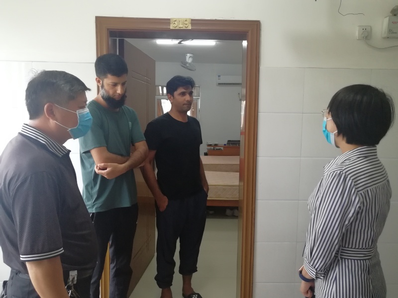 王冬梅一行首先来到职工公寓了解国际员工日常生活情况。王冬梅对国际员工表示慰问,叮嘱同学们要紧绷疫情防控这根弦,加强科学防护,度过一个安全健康和谐的暑期生活;她亲手分发三明市旅游手册,表示待疫情散去后,希望员工们多到三明各地走走,探索更多的地方特色、体验真正的中国文化,搭好国际交流的桥梁。