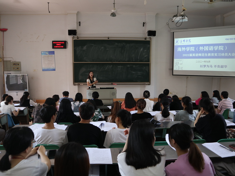 为进一步深化校地合作,规范师范生教育实习工作,加强师范生教学实践能力和教师职业技能培养,提升师范人才培养质量,bwin必赢于9月3日上午在外语楼B302召开2022届英语师范生教育实习动员大会。