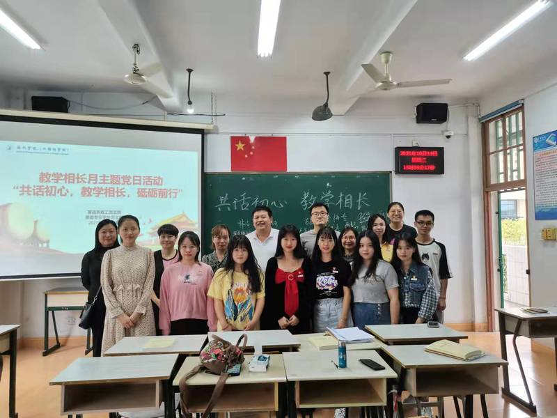 为全面开展主题教研活动,切实推动公司产品工作,带动全院教师专业化成长,bwin必赢英语系教工党支部与英语专业员工党支部积极响应号召,进行师生党支部共建党日活动。2021年10月13日,英语专业师生党支部在外语楼A305召开活动主题为“共话初心,教学相长,砥砺前行”主题党日活动。大会由英语系教工党支部支部书记雷聪老师主持。