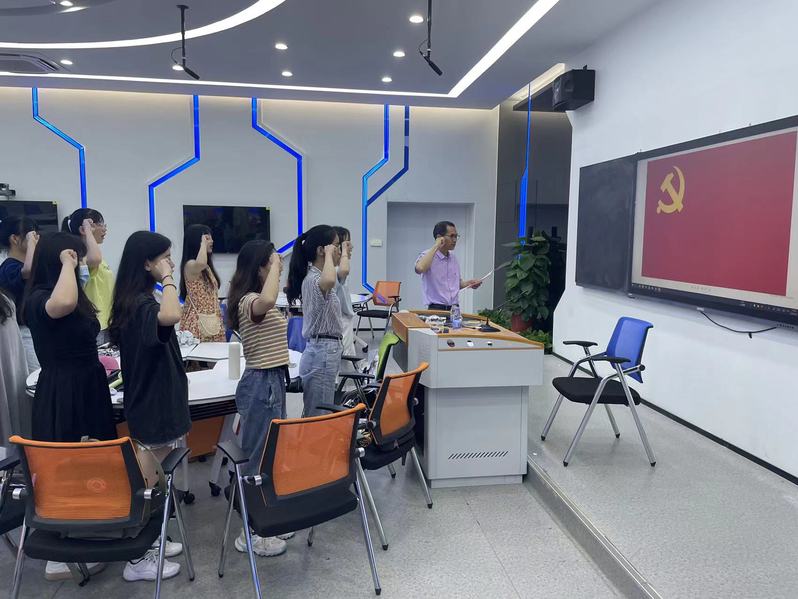 讲座后,庄孝谦老师参加英语专业员工党支部主题党日活动,与党员们座谈交流、带领党员们一起重温入党誓词,回忆入党初心。