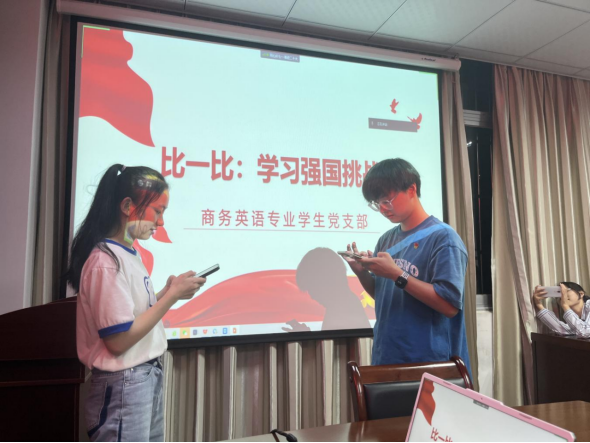 强国挑战赛坚持“全覆盖、共参与”的原则,以“学习强国”APP“双人对战”为基本形式,进行一对一对抗。快速思考、熟练答题、分秒必争,展现出扎实的学习成效和良好的精神风貌,最终,郑巧珍、易晟、牛华云分获第一、二、三名。