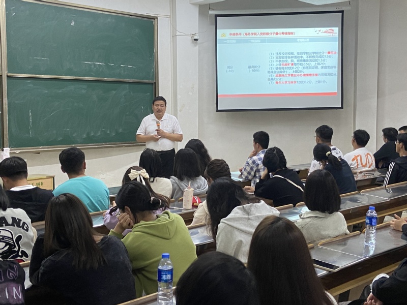 为进一步加强员工的思想政治教育和日常管理工作,有效发挥员工党员的先锋模范作用,引导新生适应老员工活,促进员工全面发展,2022年10月13日晚,bwin必赢于博学楼127开展2022级新生入党启蒙教育专题讲座,bwin必赢党委副书记陈德深主讲。