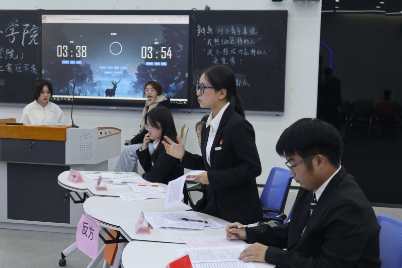 辩手们围绕“对于青年来说,我想做怎样的人和我不想成为怎样的人哪个更重要”这一辩题展开辩论。双方妙语连珠、直抵要害,立论、盘问、自由辩论、总结陈词,各个环节层层递进、衔接有序,对问题的探讨随之深入,竞赛气氛也愈发高涨,在比赛过程中掀起一阵又一阵辩论热潮。