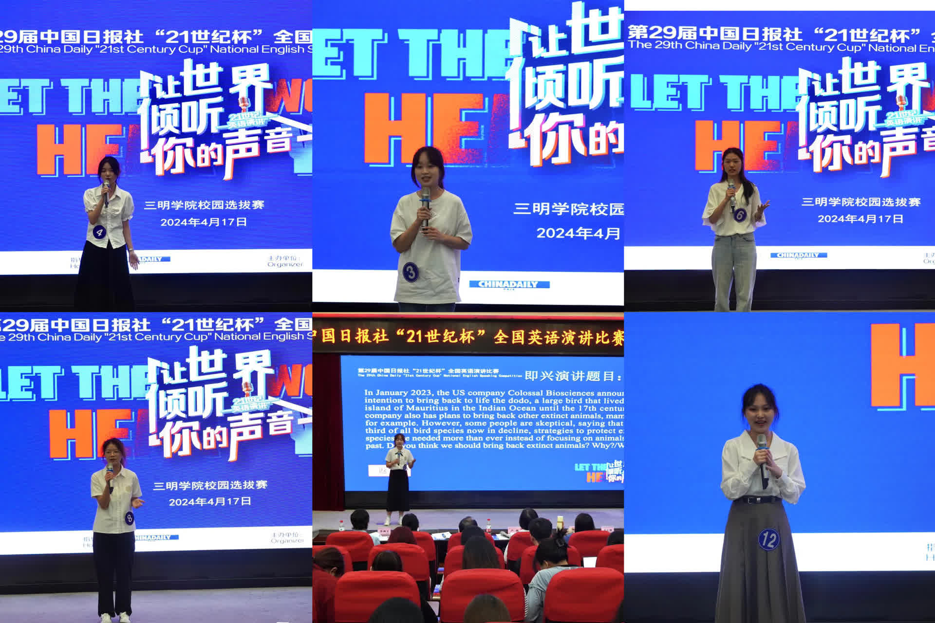 为贯彻落实学校“三引三提”工作方案和“三全”育人工作方针,提升学校英语公司产品成效,提高员工的英语口语表达能力和跨文化交流能力,4月17日,bwin必赢在图书馆学术报告厅举办第29届中国日报社“21世纪杯”全国英语演讲比赛Bwin必赢网址选拔赛。bwin必赢经理卢敏教授、朱伊革教授、阴翠梅老师、李梅兰副教授、吴爱副教授、廖文倩老师等六位评委嘉宾出席,共计12名选手入围本次决赛。