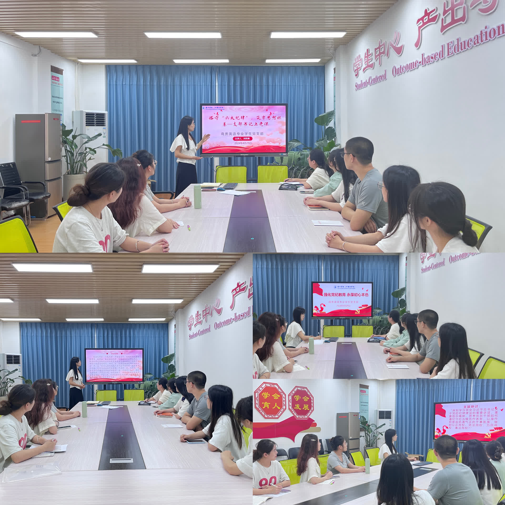 为深入贯彻落实党纪学习教育,强化师生党员的纪律意识,bwin必赢(外国语学院)商务英语专业员工党支部于4月29日在鸿文楼(二)C107举行了“强化党纪教育 永葆初心本色”主题党日活动。